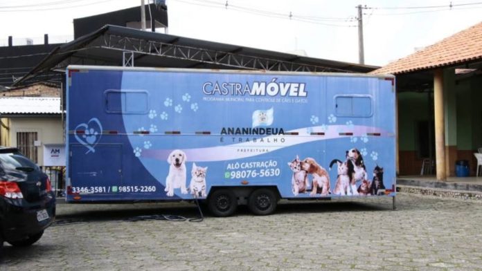 A prefeitura de Ananindeua irá realizar mais uma edição do Castramóvel, que desta vez ocorrerá na  rua Júlia Cordeiro com a Carlos Ano Bom, no Residencial Paulo Fonteles ll, bairro Águas Brancas. A população poderá levar seus pets nos dias 30 e 31 de outubro e 01 e 02  de novembro, no horário de 8h às 12h. A distribuição de senhas inicia às 7h.CONTEÚDOS RELACIONADOS:Ação Castramóvel chega ao Paar na segunda (28)Castramóvel fará serviço gratuito por 5 dias em AnanindeuaConfira abaixo a programação completa do Castramóvel em AnanindeuaSegunda-feira: 30/10/23Cadastro, avaliação e coleta de sangue de GATOSTerça-feira: 31/10/23Cadastro, avaliação e coleta de sangue de CÃES.Quarta-feira: 01/11/23Castração de GATOS que passaram pela avaliação.Quinta-feira: 02/11/23Castração de CÃES que passaram pela avaliação.Quer mais notícias sobre serviços? Acesse o nosso canal no WhatsAppPara realizar a castração é necessário que o tutor leve  RG, CPF e Comprovante de residência (original e cópia).Vale ressaltar que os animais que foram vacinados nos últimos 15 dias, não podem participar do Castramóvel. A Ação é voltada somente para os moradores e pets do bairro atendido.O Castramóvel é um programa da Prefeitura de Ananindeua, com apoio da Secretaria de saúde, que visa promover o atendimento veterinário e a castração de cães e gatos. Promovendo a saúde pública e apoiando a causa animal. O Programa já realizou a castração de mais de 4.000 pets, entre cães e gatos.