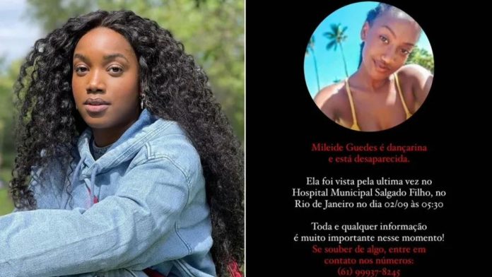 IZA, 33, usou as redes sociais para divulgar o desaparecimento de uma de suas dançarinas, Mileide Guedes.A cantora, que se apresenta no The Town no próximo domingo (10), pediu ajuda para encontrar a jovem.Mulher desaparecida é encontrada dentro de um buraco”Coração apertado, mas fé que vamos encontrá-la. Reposte essa mensagem em suas redes sociais”, escreveu a cantora no storie do Instagram.Mensagem sobre o desaparecimento. “Mileide Guedes é dançarina e está desaparecida. Ela foi vista pela ultima vez no Hospital Municipal Salgado Filho [Méier], no Rio de Janeiro no dia 02/09 às 05:30. Toda e qualquer informação é muito importante nesse momento! Se souber de algo, entre em contato nos números: (61) 99937-8245 / (61i) 99971-2313 “, diz o texto sobre a jovem.Em nota enviada para a reportagem, a Secretaria de Segurança Pública do Rio informou que o caso foi registrado na 12ª DP (Copacabana) e encaminhado à Delegacia de Descobertas de Paradeiros (DDPA), que dará continuidade às investigações.A família da Mileide soltou o seguinte comunicado:”A dançarina Mileide Guedes foi de Brasília ao Rio para os ensaios de um evento que iria realizar dia 10/09/2023 em SP, porém desde quinta-feira estamos sem contato direto com ela. Temos apenas informações de terceiros, primeiro que ela foi assaltada e espancada e levou um tiro na perna, foi atendida no Hospital Municipal Salgado Filho na madrugada de sábado (02/09/2023) e à revelia se evadiu em torno de 5h30 do mesmo dia. Após isso houve outra informação de que o Hostel Maresias do Leme a acolheu e ela saiu hoje (03/09/2023) por volta de 12:30h, porém sem documentos e desnorteada. Após isso foi vista agora a tarde em um teatro em Copacabana, testemunhas disseram que ela se apresentava como uma artista e que estava desorientada. Ela possivelmente está com um surto psicótico. Um familiar está a caminho do Rio para buscar mais informações e a encontrando trazê-la de volta à família. Recebemos algumas informações coerentes, porém bastantes trotes também, é um momento delicado para família e amigos e todo apoio é bem-vindo.”
