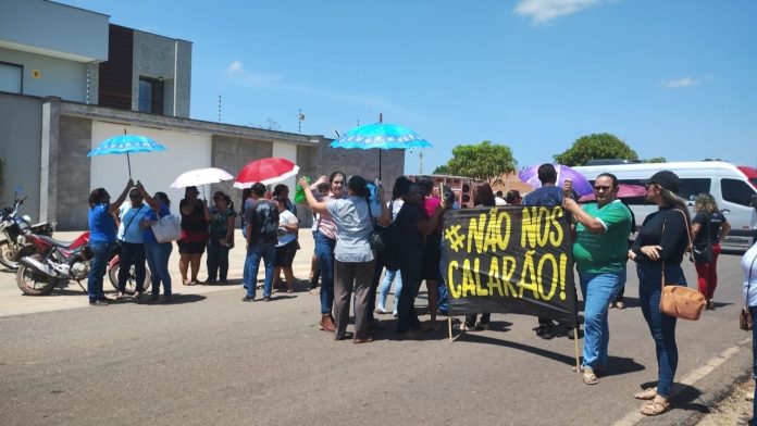 Dezenas de professores da rede pública municipal se reuniram nesta segunda-feira (02) em frente à casa do prefeito de Irituia, Marcos Tonheiro, localizada às margens da PA 253, para reivindicar melhores condições de trabalho, o pagamento do piso salarial e o repasse imediato do INSS.