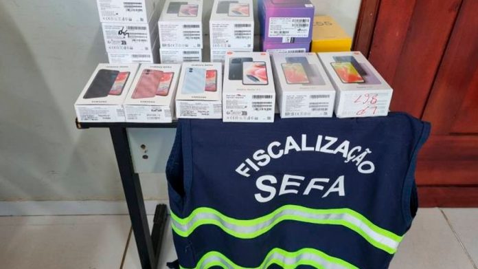 Durante fiscalização de rotina realizada em um ônibus de passageiros na PA 447, nesta sexta-feira (23), foram localizados e apreendidos produtos eletrônicos sem documentação fiscal. Entre os produtos havia 16 telefones celulares.As mercadorias, cujo valor total é de R$ 16.933,00, vinham de Goiânia (GO) e estavam destinadas à cidade de Floresta do Araguaia, no Pará. A apreensão foi realizada pelos fiscais de receitas estaduais da Secretaria de Estado da Fazenda (Sefa), lotados na Coordenação de Mercadorias em Trânsito de Conceição do Araguaia, sudeste do Estado.Foi emitido um Termo de Apreensão e Depósito (TAD) no valor total de R$ 5.791,09. “Os fiscais suspeitaram das notas fiscais apresentadas, que mencionavam apenas pen drives e copos importados, e decidiram realizar uma vistoria física no ônibus”, contou o coordenador da unidade da Sefa no Araguaia, Cicinato Oliveira Júnior.LEIA TAMBÉM:+ Sefa apreende 48 toneladas de cassiterita em pó no Pará+ Sefa em Carajás apreende carga irregular de gergelim e açaí+ Sefa apreende madeira avaliada em quase 30 mil no ParáEste ano já foram realizadas mais de 20 apreensões de celulares na região do Araguaia, informou o coordenador. “É uma tentativa de burlar a fiscalização estadual e evitar o pagamento de tributos, utilizando ônibus de turismo ou carros de passeio para o transporte dos eletrônicos”. Segundo ele, a ação da Sefa garante o cumprimento das normas vigentes, evita a concorrência desleal e a sonegação de impostos.
