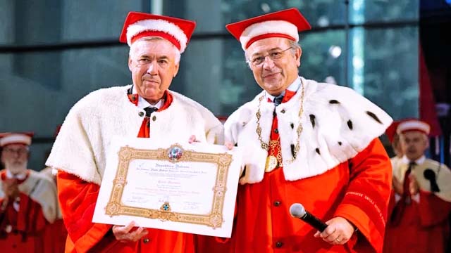Nesta quarta-feira (11), Ancelotti foi homenageado em um evento e recebeu o título de Doutor Honoris Causa em Ciências e Técnicas de Atividades Motoras Preventivas e Adaptadas.Durante o discurso sobre o técnico do Real Madrid, Paolo Andrei falou sobre a admiração da universidade pelo treinador e citou o próximo desafio da carreira do italiano.”Em 2024, Carlo Ancelotti tem uma aventura extraordinária que seria apenas um sonho para muitos treinadores: treinar o Brasil. É o primeiro estrangeiro dos últimos 60 anos que dirigirá a seleção. O quarto em toda a história. A admiração que sentimos por ele é generalizada e vai além de qualquer lugar ou time. Será o último prêmio que Carlo entregará”, disse Paolo Andrei, reitor da Universidade de Parma, sobre Carlo Ancelotti.