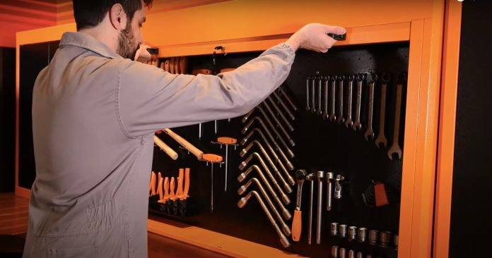 Aposte num painel de ferramentas que as deixe organizadas e fáceis de visualizar, ao alcance da mão, mas de forma segura. Um modelo que possa ser personalizado conforme a necessidade do seu negócio e que contenha as ferramentas mais utilizadas (como chaves combinadas, soquetes, chaves biela, martelos e alicates de pressão  para anéis) faz a diferença no dia a dia.