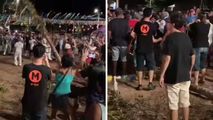 Veja imagens do primeiro arrastão do Arraial do PavulagemO acidente foi gravado por um cinegrafista amador e o registro mostra a vítima, que era “Mordomo da Festa”, sendo atingida em cheio na cabeça e desmaiando logo em seguida. Imediatamente, todos os brincantes se reuniram em volta para socorrê-la.