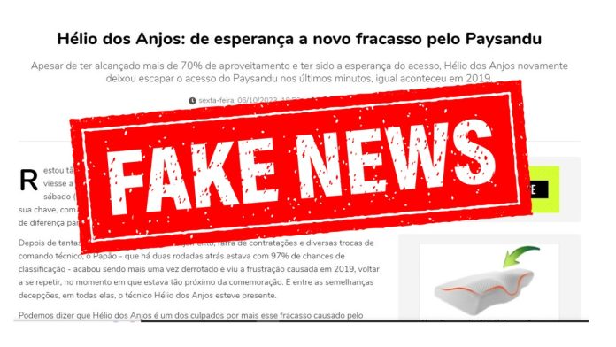 Circula nas redes sociais conteúdo citando o técnico Hélio dos Anjos de uma forma negativa, atribuída ao DOL.A coordenação de conteúdo, do DOL informa que em nenhum momento essa matéria foi publicada no portal e que o conteúdo contra o Paysandu é Fakenews.Em meio ao ocorrido, o DOL avisa já estar tomando as providências cabíveis junto ao setor jurídico.
