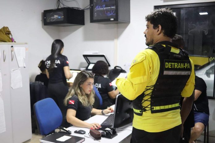 “Lei Seca” – De forma integrada, policias civis estão autuando condutores que são flagrados dirigindo sob efeito de bebida alcoólica. Em um ponto da cidade de Benevides, na PA-391, via de acesso à ilha de Mosqueiro, agentes do Departamento de Trânsito do Estado (Detran), com apoio de policiais militares, trabalham na fiscalização de trânsito.