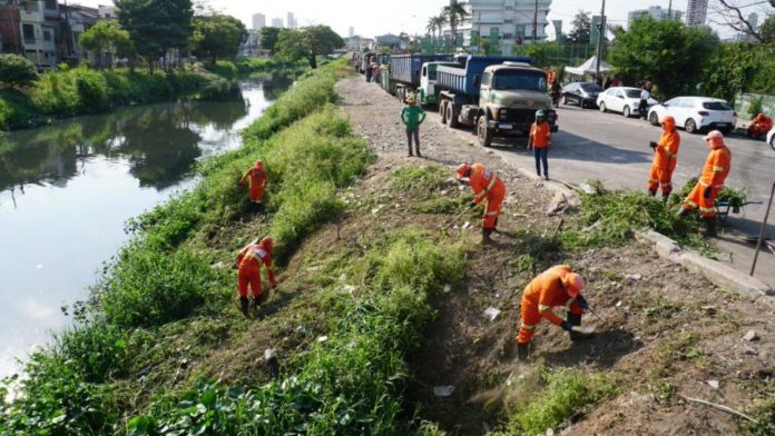 Com 80 agentes da limpeza pública, três carregadeiras, uma retroescavadeira e 16 caçambas, o mutirão de limpeza tem como foco os canais e pontos críticos de descarte irregular de entulho.