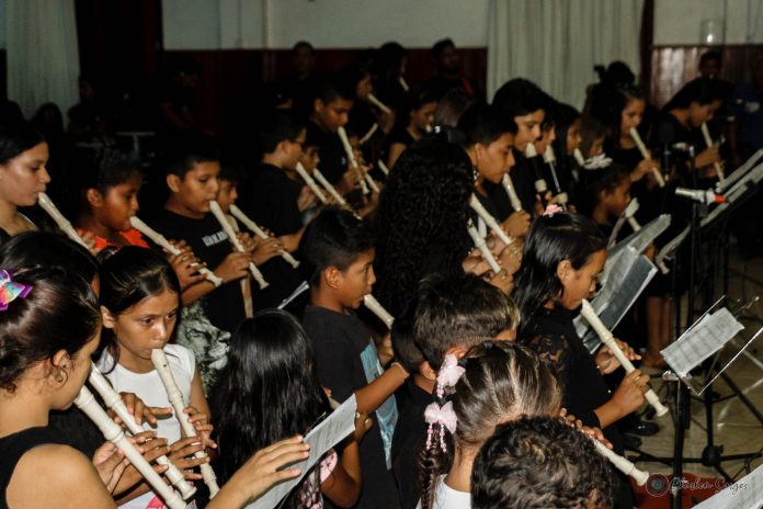 O palco foi tomado por uma variedade de apresentações, demonstrando o talento e a diversidade das oficinas oferecidas, que incluíram teclados, violão, flauta doce, sopros, percussão, canto coral, teatro e dança. Uma verdadeira sinfonia de habilidade e paixão permeou o recital, deixando uma marca indelével na memória dos presentes.
