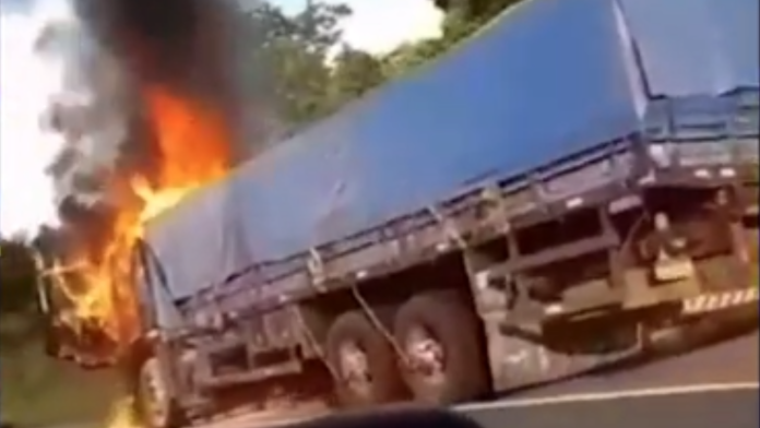 Vídeo: Carreta pega fogo na BR-316 em Santa Izabel no Pará