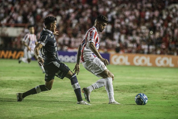 O jejum de vitórias do Clube do Remo continua, mas o Leão Azul conquistou um bom resultado fora de casa e fica fora da zona de rebaixamento.Jogando em Recife (PE), o Leão Azul ficou no empate diante do Náutico-PE por 0 a 0, em partida disputada neste domingo (23), pela 14ª rodada da Terceirona. A partida foi realizada no estádio dos Aflitos. Ver essa foto no Instagram Uma publicação compartilhada por Clube do Remo (@clubedoremo) Com o resultado, o Remo chega a 14 pontos e sobe para a 16ª posição, dormindo fora da zona da degola, enquanto que o Timbu vai a 23 pontos, indo ao 5º lugar, dentro do G8 da Série C.Na próxima rodada, o Leão volta a jogar dentro de casa e recebe o Ypiranga-RS no sábado (29), enquanto que o Náutico-PE vai enfrentar o Operário-PR, fora de casa.O JOGOO personagem central do primeiro tempo foi o gramado pesado devido a chuva que caiu na capital pernambucana, o que deixou o jogo frio na primeira parte do jogo.Aproveitando da bola parada, o Náutico-PE tentou levar perigo a meta do goleiro Vinicius, mas o goleiro azulino foi pouco acionado na primeira etapa.Mesmo sem objetividade, o Remo teve a melhor chance do primeiro tempo aos 28 minutos: em cobrança de falta, o volante Richard Franco cabeceou e a bola parou na trave deixando o grito de gol entalado na garganta dos azulinos.QUASE A LEI DO EX FOI APLICADA! @ClubeDoRemoA bola é alçada na área, Richard Franco cabeceia e a bola vai na trave!!!#SérieCnoDAZN #SérieC2023 pic.twitter.com/IyC9ch3ivP— DAZN BRA (@DAZN_BRA) July 23, 2023 Na etapa final, os goleiros foram vilões do gol: primeiro Vagner, que evitou com o pé o gol de Rodriguinho e depois foi Vinicius que impediu o gol de Jean, em chute de fora da área.DEFENDEUUUUU, VÁGNERRRR! REMO CHEGA COM PERIGO E QUASE ABRE O PLACAR!!!#SérieCnoDAZN #SérieC2023 pic.twitter.com/dB9Vh3SeXg— DAZN BRA (@DAZN_BRA) July 23, 2023 CHAMOU A RESPONSABILIDADE! 🔥⚽Jean Mangabeira dispara um poderoso chute no canto direito do gol, mas o goleiro Vinícius se estica todo e faz uma incrível defesa para impedir o gol do @nauticope !#SérieCnoDAZN #SérieC2023 pic.twitter.com/a8AkvH3hVO— DAZN BRA (@DAZN_BRA) July 23, 2023 O Timbu chegou a balançar a rede, mas a arbitragem anulou o gol. A mesma arbitragem que deixou o Remo com um jogador a menos, pois o zagueiro Diego Guerra foi expulso, mas o cenário do jogo não mudou e com isso, o time paraense dorme fora da zona de queda para a Série D.JOGO ELETRIZANTE! No contra ataque, o Náutico chega com perigo e faz o gol, mas o bandeira marca o impedimento!#SérieCnoDAZN #SérieC2023 pic.twitter.com/vHoRwQgcVE— DAZN BRA (@DAZN_BRA) July 23, 2023 Diego Guerra, do Remo, recebe o cartão vermelho após cometer falta dura em Bryan.SérieCnoDAZN #SérieC2023 pic.twitter.com/mcjzmGpvQU— DAZN BRA (@DAZN_BRA) July 24, 2023 FICHA TÉCNICANÁUTICO-PE: Vagner; Vitor Ferraz, Denilson, Odivan (Wesley Junior) e Renan Siqueira; Jean Mangabeira, Gabriel Santiago (Matheus), Souza e Berguinho; Paul Villeiro (Eduardo) e Jean (Alisson Santos)Técnico: Fernando MarchioriREMO: Vinicius; Lucas Marques, Diego Guerra, Ícaro e Evandro (Kevin); Anderson Uchoa (Paulinho Curuá), Richard Franco (Renanzinho), Marcelo e Rodriguinho; Ronald e FabinhoTécnico: Ricardo CataláÁRBITRO: Tiago Ramos de Oliveira (PB)ASSISTENTES: Matheus Marques (PB) e Paulo Ricardo Ribeiro (PB)CARTÃO AMARELO: Uchoa, Diego Guerra e Renanzinho (REM)CARTÃO VERMELHO: Diego Guerra (REM)LOCAL: Aflitos, Recife (PE)E MAIS