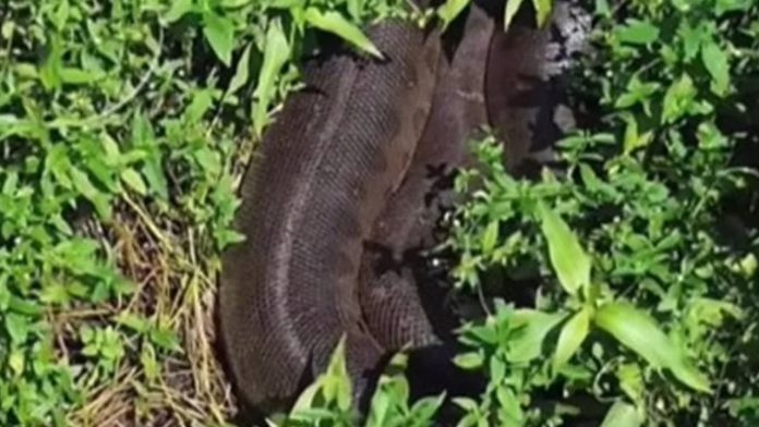 A sucuri é uma das maiores serpentes do mundo e é conhecida por sua habilidade em se camuflar e se mover sorrateiramente em seu ambiente natural.Um vídeo impressionante que viralizou nas redes sociais mostra uma sucuri gigante camuflada em meio à vegetação da cidade de Bonito, no Mato Grosso do Sul.Conteúdos relacionados:Vídeo: sucuri gigante surpreende turistas durante passeio Vídeo: forro de casa desaba e revela três cobras gigantes Graças ao uso de um drone, um fotógrafo conseguiu capturar imagens do habitat da cobra, onde ela permanece enrolada. Durante a maior parte do registro, a sucuri permanece imóvel, exibindo apenas movimentos sutis com a cabeça. As imagens impressionantes foram gentilmente compartilhadas pelo fotógrafo Eduardo Alves, através do perfil @destinosmatogrossodosul no Instagram.O responsável pelas imagens expressou sua empolgação ao encontrar o animal. “Não sei descrever como é a sensação de encontrar um magnífico animal como esse. É fantástico, surreal”.Veja o vídeo: