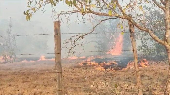 Moradores dos arredores se mostram preocupados com o volume da queimada que chega a prejudicar a criação dos animais nas fazendas.VEJA VÍDEO: