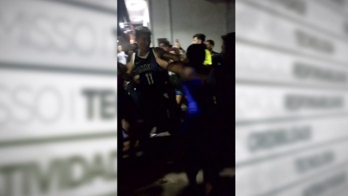 Dezenas de pessoas, entre homens, mulheres e até mesmo uma idosa, aparecem em uma verdadeira pancadaria ao lado da Praça do Camarão, centro da cidade, onde ocorrem os shows em datas festivas.Conteúdo relacionado Óbidos decreta emergência pela estiagem no oeste do ParáGoverno do Estado entrega novo Terminal Hidroviário de MuanáPrédio da Prefeitura do Muaná estala e causa medo no MarajóA briga durou minutos e só parou com a chegada da Polícia Militar e da Guarda Municipal. Os órgãos de segurança informaram que ninguém foi preso. Quer saber mais sobre Pará? Acesse nosso canal no WhatsApp