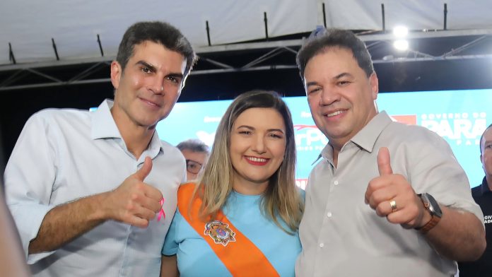 Nessa terça, 24, o presidente da Alepa, deputado Chicão (MDB) esteve no município de Benevides cumprindo agenda ao lado do governador, Helder Barbalho. Na pauta, a assinatura da Ordem de Serviço para a construção da Usina da Paz, entrega de benefícios do Programa Habitacional Sua Casa e entrega do Plano de Mobilidade Urbana do Município. Na foto, o governador Helder Barbalho, a prefeita Luziane Solon e o deputado Chicão celebrando a conquista de uma unidade da Usina da Paz, no município, esta que será a 25ª usina a ser entregue no Pará e oferecerá mais de 70 serviços gratuitos à população.