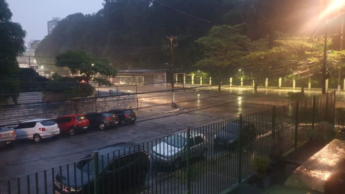 É muita água, meu patrão! Talvez o “sextou!” de muitas pessoas pode ser prejudicado nesta sexta-feira (30). Pelo menos é o que o tempo mostra em Belém, que está sob uma chuva torrencial, além de muitas trovoadas.