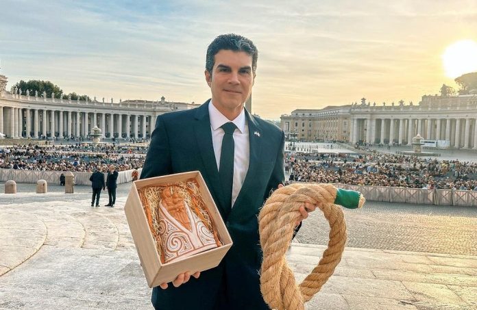Nas redes sociais, Helder publicou “Já no Vaticano para um encontro muito especial com o Papa Francisco. De presente, trouxe dois símbolos importantes para o povo paraense: uma imagem de Nossa Senhora de Nazaré feita em cerâmica, por artesãos de Icoaraci, distrito de Belém, e um pedaço da corda do Círio 2023”: Ver essa foto no Instagram Uma publicação compartilhada por Helder Barbalho (@helderbarbalho)