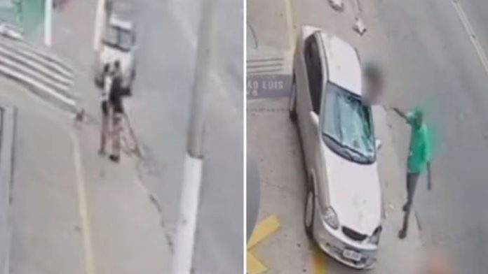 Um casal estava caminhando tranquilamente com o cachorro em uma calçada da Avenida Comendador Sant´Anna, no Capão Redondo, na zona sul de São Paulo, quando parou para se beijar.No momento do beijo, um carro invadiu a calçada e atropelou os dois. Câmeras de seguranças de um posto de gasolina flagraram o exato momento da colisão.Nas imagens, é possível ver os dois se beijando e logo depois sendo atingidos pelo carro. O cachorro conseguiu escapar do atropelamento e não se feriu. Mulher joga carro contra ex-marido e o mata atropeladoVídeo: pneu estoura e causa a morte de borracheiro no ParáO condutor do veículo foi preso em flagrante, de acordo com a Secretaria de Segurança Pública do Estado de São Paulo. Ainda segundo os policiais, o motorista teria consumido bebida alcoólica e teria dito que não se lembrava do que havia acontecido. VEJA O VÍDEOO casal foi socorrido pelo Serviço de Atendimento Móvel de Urgência (Samu). O homem, de 31 anos, encaminhado para o Hospital Municipal do M'Boi Mirim, infelizmente, não resistiu.A mulher, de 26 anos, foi encaminhada para o Hospital Municipal de Campo Limpo. Ainda não se sabe qual o estado de saúde dela. Os nomes das vítimas e nem do condutor do veículo não foram divulgados.O caso foi registrado como homicídio culposo, quando não há intenção de matar, sob direção de veículo e lesão corporal culposa na direção de veículo.
