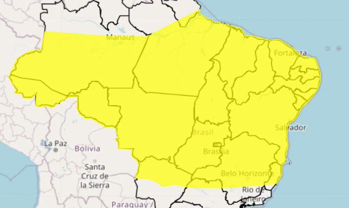 O Instituto Nacional de Meteorologia (INMET) emitiu um alerta amarelo para o município de Portel, no arquipélago do Marajó, válido desta segunda-feira (13) até as 10h da terça-feira (14). A previsão é de chuvas intensas, com acumulados de 20 a 30 mm por hora ou até 50 mm por dia, além de ventos fortes que podem atingir entre 40 e 60 km/h.