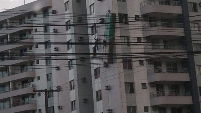 Vídeo: andaime cai e trabalhador fica pendurado em prédio